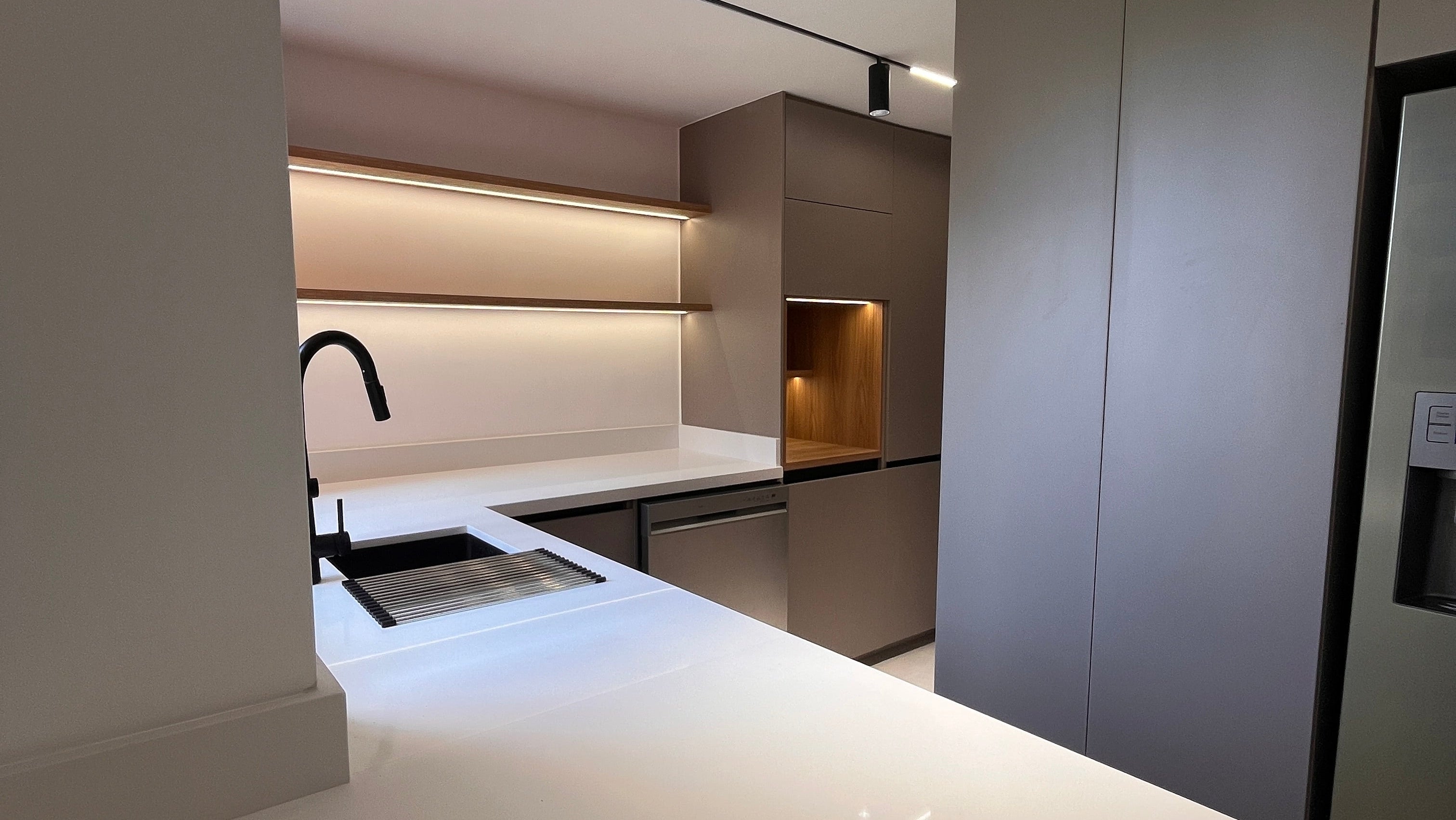 Una cocina con líneas limpias, tonos neutros y detalles cálidos que transforman cada preparación en un momento único